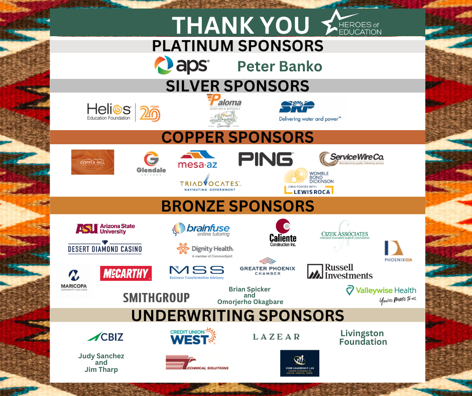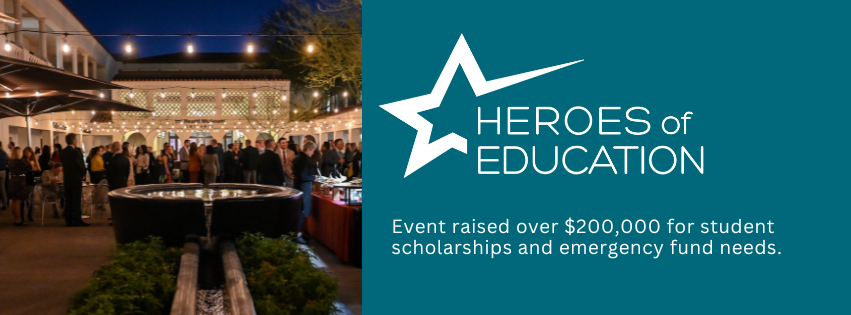 The Maricopa Community Colleges Foundation’s Heroes of Education fundraising event was a big success, bringing together 400 supporters at the Heard Museum. The evening was a powerful demonstration of the community’s commitment to expanding access to higher education and ensuring student success, raising $209,200 for student scholarships and emergency assistance, thanks to the generosity of supporters and including Platinum Sponsors, APS and Peter Banko.